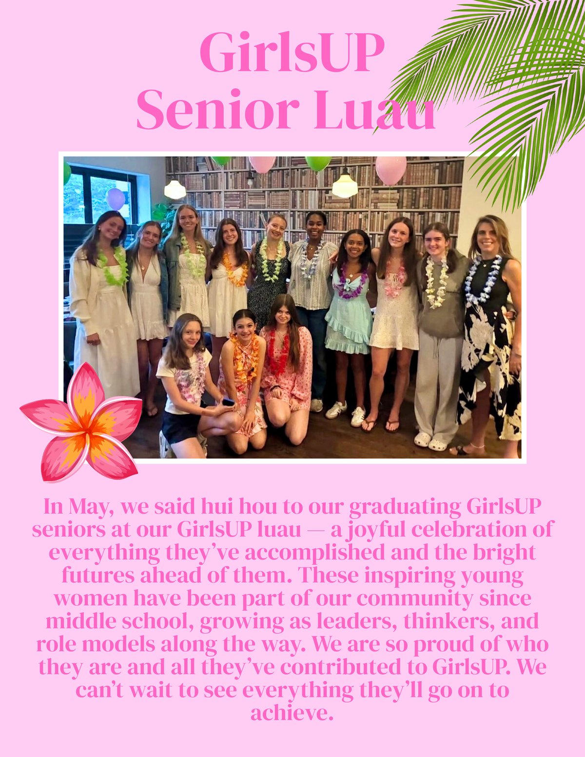 In May, we said hui hou to our graduating GirlsUP seniors at our GirlsUP luau — a joyful celebration of everything they’ve accomplished and the bright futures ahead of them. These inspiring young women have been part of our community since middle school, growing as leaders, thinkers, and role models along the way. We are so proud of who they are and all they’ve contributed to GirlsUP. We can’t wait to see everything they’ll go on to achieve.